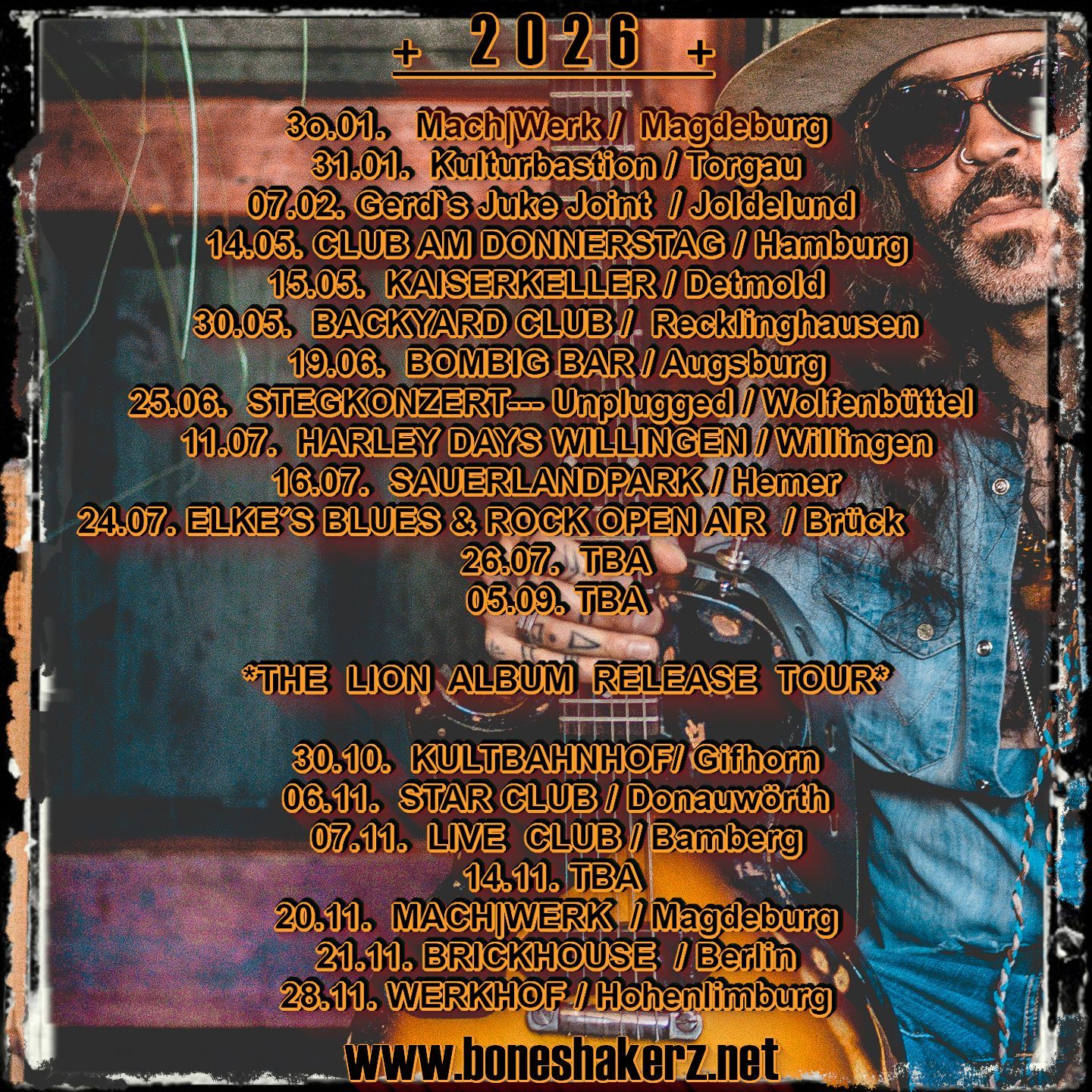2025 Gigs unter anderem auf dem international beachteten New Orleans Festival/Fürth, den Harley Days/ Hamburg, dem German Kultrock Festival in der Balver Höhle oder bei den Schloss- Spielen Hohenlimburg.